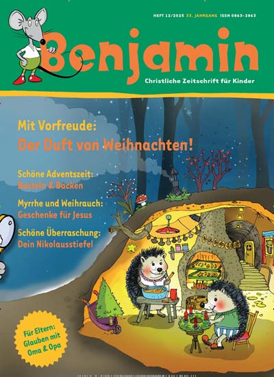 Benjamin ist für Kinder zwischen 5 und 10 Jahren gedachtIhr Kind darf sich auf viele Geschichten, Bastelideen und Spieletipps freuen, die vom gesamten Team mit äußerster Sorgfalt zusammengestellt werden. Die Bibelgeschichten befassen sich immer wieder mit einem anderen Thema, das auf wunderbare Weise erzählt wird. Für die kalte Jahreszeit bieten sich die tollen Backideen an, die in Benjamin zur Verfügung gestellt werden. Ihr Kind kann sich das Rezept aussuchen, das ihm ganz besonders gefällt, denn alles lässt sich einfach zubereiten. Im Bereich der Kinderzeitschriften erhalten Sie außerdem viele nützliche Tipps, die von Religionspädagogen und Journalisten ausgewählt worden sind und sich ganz speziell an Eltern richten.