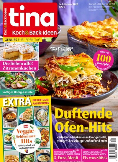 Die Zeitschrift Tina Koch & Backideen entführt jeden Kochliebhaber in die Welt der alltäglichen oder exklusiven Genüsse. Jede Ausgabe bietet dabei eine umfangreiche Vorstellung von Rezepten für verschiedene Anlässe an.