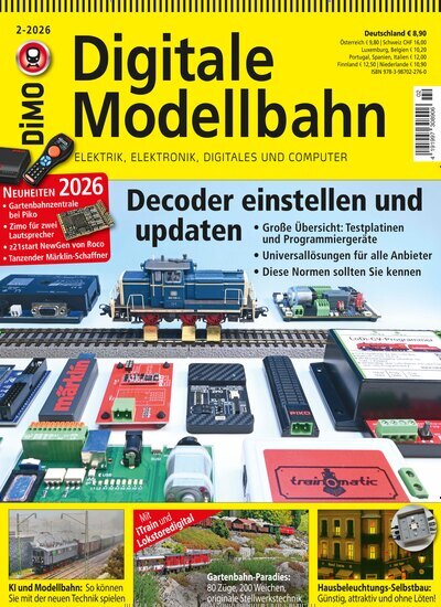 Hilfreiche Berichte, Tipps und Ratschläge zum Aufbau und Betrieb Ihrer ModellbahnanlageDas Magazin unterstütz Sie mit hilfreichen Berichten, wertvollen Tipps und praktischen Ratschlägen beim elektrischen Aufbau Ihrer Modellbahnanlage und zeigt Ihnen, auf was Sie beim Betrieb der Miniaturzüge ganz besonders achten sollten. Vom Decoder über die Meldetechnik bis hin zur Anlagenbeleuchtung werden alle Bestandteile in Betracht gezogen, die für den digitalen und elektronischen Betrieb Ihrer Modellbahnanlage von besonderer Bedeutung sein können. Auch die wichtigsten Informationen rund um die facettenreichen Möglichkeiten der Softwaresteuerung werden hierbei nicht außer Acht gelassen. Somit erhalten Sie mit der Zeitschrift Digitale Modellbahn ausführliche Antworten auf die wichtigsten technischen Fragen, sodass einem reibungslosen Aufbau sowie einem erfolgreichen Betrieb Ihrer Anlage nichts mehr im Wege steht.
