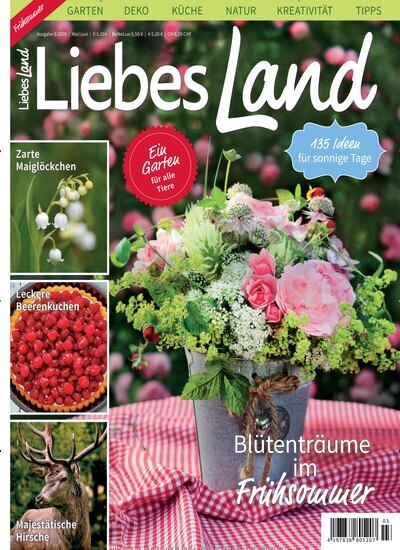 Kreative Bastelideen, leckere Landküche und Tipps zu Handarbeit, Gartengestaltung und Dekoration finden Sie in der Zeitschrift Liebes Land. Mit liebevoller Detailtreue und stets saisonalen Tipps und Rezeptideen kommt mit den Gartenzeitschriften in jeder Wohnung Landstimmung auf.
