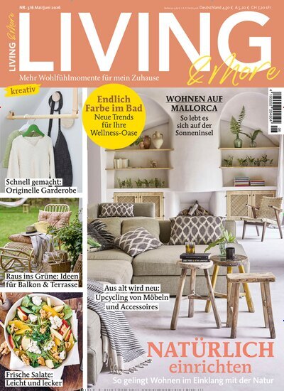 Das junge Magazin mit spannenden Tipps für einen gemütlichen Lifestyle präsentiert sich acht Mal im Jahr. Die Leser:innen finden in dem Wohnmagazin Living & More interessante Trends auf dem Einrichtungsmarkt. Es richtet sich vor allem an Menschen, die selbst aktiv werden möchten. Das Motto „Wohnen, Einrichten, Dekorieren, Genießen“ umfasst DIY-Tipps für ein behagliches Zuhause. Dabei spielen Themen wie „Hygge“ eine große Rolle. Hygge ist ein dänischer Begriff für Geborgenheit und Behaglichkeit. Das Magazin zeigt Wege auf, wie aus einem normalen Zuhause ein hyggeliges Heim wird. Das Living & More Magazin öffnet Wohnungstüren und präsentiert schöne Interiors. Möbel und Accessoires stehen ebenso im Fokus wie smarte Innovationen. Sogar Tipps für Hausbesitzer:innen mit Hunden und interessante Rezepte sind enthalten. Die Anleitungen in den DIY-Videos sind leicht verständlich und setzen keine großen Vorkenntnisse voraus. Wer die Zeitschrift kaufen möchte, findet viele inspirierende Fotos und Texte. Leser:innen, die sich kreativ betätigen möchten oder an Innenarchitektur interessiert sind, werden sich hier wiederfinden. Wer das Magazin bestellen möchte, erlebt eine Inspirationsquelle für sein persönliches Umfeld. Am Ende bleibt immer noch Raum für eigene Ideen, damit Sie Ihr Zuhause individuell gestalten können. Für alle, die sich gerne mit Wohnen und Dekorieren beschäftigen, ist dieses Magazin eine wunderbare Ergänzung.