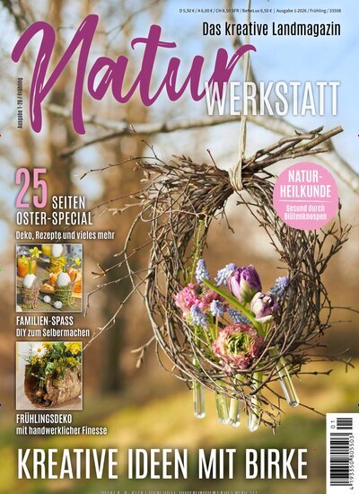 Die Zeitschrift Naturwerkstatt zeigt Ihnen, wie Sie Ihr Zuhause mit schönen Sachen aus der Natur gestalten können. Es geht darum, viele Dekorationen selbst zu kreieren und sich Zeit für sich selbst zu nehmen.