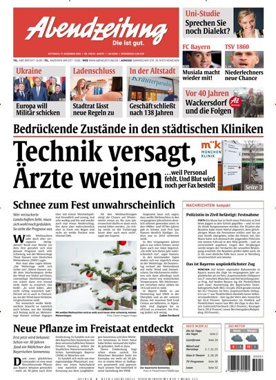 Lesen Sie jetzt Abendzeitung München und über weitere 1500 Magazine, darunter auch viele Zeitungsabos online. Mit der Zeitschriften-Flatrate United Kiosk NEWS erhalten Sie unbegrenzten Zugriff nicht nur auf das aktuelle Heft, sondern auch auf viele Archivausgaben. Profitieren Sie unter anderem von diesen fünf Vorteilen: