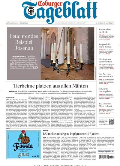 Zeitung, die regional und überregional eine fundierte Berichterstattung bietet. Besonders Menschen, die an politischen Entwicklungen interessiert sind, finden hier ausführliche Berichterstattung. Auch für Sportfans bietet das Blatt detaillierte Analysen und spannende Hintergrundberichte. Kulturinteressierte kommen durch Artikel über lokale und internationale Events auf ihre Kosten. Die Inhalte sind so gestaltet, dass verschiedene Zielgruppen angesprochen werden. Familien finden zudem oft Wissenswertes über das lokale Geschehen sowie kindgerechte Veranstaltungen. Viele Leser:innen schätzen die Aktualität und die Vielfalt der Berichterstattung. Die Zeitung bietet auch spannende Reportagen, die tiefer in verschiedene Themen eintauchen. Auf diese Weise bekommen Sie als Lesende stets einen umfassenden Überblick. Wenn Sie also das Coburger Tageblatt kaufen, können Sie sicher sein, immer gut informiert zu sein.