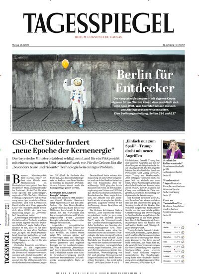 Reflektiert und tagesaktuell – Der Tagesspiegel geht den Dingen auf den Grund und beleuchtet meinungsstark nationale und globale Entwicklungen, ohne tendenziös zu sein. Als auflagenstärkste Tageszeitung Berlins ist das Journal nicht nur die erste Wahl bei lokalen Ereignissen und den Geschehnissen rund um das Berliner Politparkett, sondern bewegt sich thematisch ebenso auf der internationalen Bühne. Mit einem Abo bei United Kiosk erhalten Sie täglich relevante Informationen aus aller Welt.