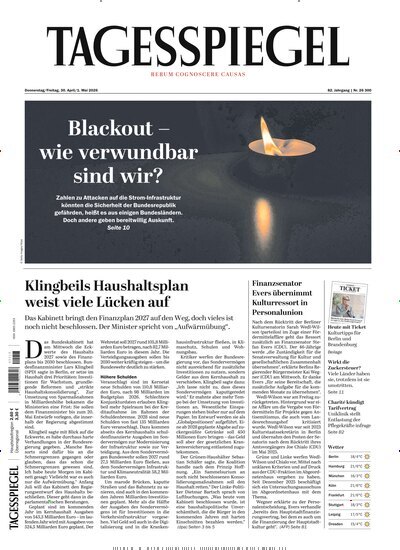 Eine Tageszeitung aus gutem HauseDie ausgezeichnete journalistische Qualität von Der Tagesspiegel wurde bereits vielfach gewürdigt und zeigt sich mit jeder neuen Ausgabe. In kritischen Kommentaren, tiefgründigen Recherchen und einer liberalen Berichterstattung ermöglicht das Journal einen umfassenden und unabhängigen Blick auf das Weltgeschehen, mit einem Themenschwerpunkt auf Berlin und Brandenburg. Als Mitglieder jener Verlagsgruppe, der auch Die Zeit und das