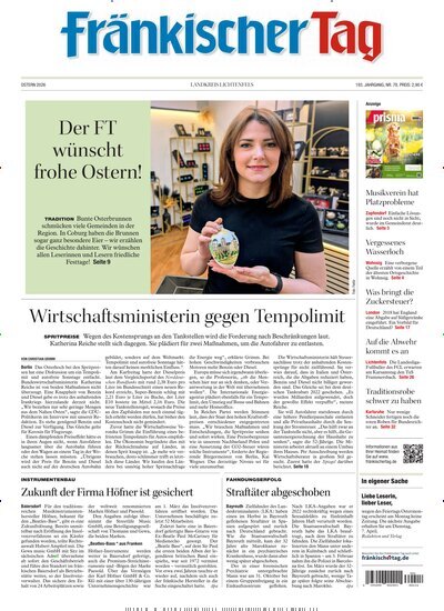 Entdecken Sie den Fränkischen Tag Landkreis Lichtenfels – Ihre Zeitung für umfassende InformationDie Zeitschrift Fränkischer Tag Landkreis Lichtenfels richtet sich an alle, die sich für Nachrichten, Politik, Kultur und Sport interessieren. Tageszeitungsleser:innen finden hier eine Quelle verlässlicher Informationen, die es ihnen ermöglicht, sich ein umfassendes Bild von aktuellen Geschehnissen zu machen. Der vielseitige Inhalt spricht eine breite Zielgruppe an, von politisch Interessierten bis zu Kulturliebhabern und Sportbegeisterten.