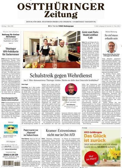 Ostthüringer Zeitung Saale HolzlandDiese Auswahl bietet eine fundierte Orientierung in aktuellen Themen mit regionalem Schwerpunkt.