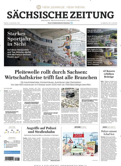 Die Sächsische Zeitung ist eine wichtige und seriöse Informationsquelle, wenn Sie in Dresden und der Region keine Neuigkeiten verpassen wollen. Das Magazin deckt sowohl in gedruckter Form als auch im digitalen Format als epaper neben der lokalen Berichterstattung alle klassischen Ressorts einer Tageszeitung ab, darunter Wirtschaft, Politik, Sport und Kultur.