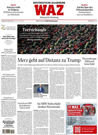 Die aktuelle Ausgabe steht digital jederzeit zur Verfügung. Jetzt das WAZ Westdeutsche Allgemeine Zeitung für Duisburg Abo kaufen und täglich bestens informiert bleiben.