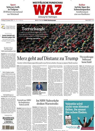 Die aktuelle Ausgabe steht Ihnen jederzeit zur Verfügung. Jetzt das WAZ Westdeutsche Allgemeine Zeitung für Hattingen Abo kaufen und keinen wichtigen Bericht mehr verpassen.