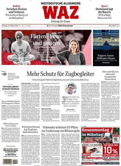 WAZ Westdeutsche Allgemeine Zeitung für Essen kaufen – aktuelle Informationen für Menschen aus EssenDiese regionale Ausgabe der WAZ bietet Menschen aus Essen Zugang zu umfassenden regionalen und globalen Informationen. Besonders für alle, die sich über Entwicklungen in ihrer Heimatstadt und Umgebung informieren möchten, eignet sich das Angebot. Die fundierte Berichterstattung gibt Einblicke in politische, wirtschaftliche und gesellschaftliche Themen aus NRW, Deutschland und der Welt. Dabei bleibt die lokale Perspektive stets im Fokus.
