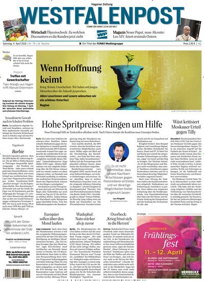 Zeitung verbindet regionale Inhalte mit einem breiten Blick auf das politische, wirtschaftliche und kulturelle Geschehen in ganz Deutschland und der Welt. Dabei stehen Vereinsleben, Polizeimeldungen, Veranstaltungen und Ausflugstipps ebenso im Fokus wie Lesermeinungen, Umfragen und bürgerschaftliches Engagement. Jetzt das Westfalenpost Hagen Süd Abonnement kaufen und täglich wissen, was Ihre Stadt bewegt.